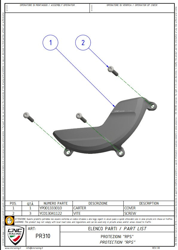 Grazie alla perfetta Geometria, la copertura protettiva si adatta perfettamente alla carenatura, senza necessità di modifiche. È compatibile sia con il coperchio frizione OEM che con il coperchio frizione trasparente CNC Racing (CA210).