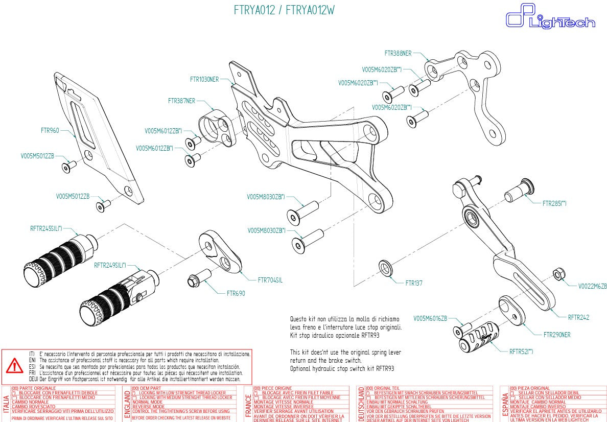 Lightch Ftrya012 è il sistema perfetto per i poggiapiedi per tutti i conducenti della Yamaha YZF-R6 RJ27 (2017-2025), che attendono le prestazioni più alte sia sulla strada che in pista. Grazie alle sue opzioni di impostazione versatile e alla compatibilità con la commutazione standard e di inversione, è l'ideale per i corridori sportivi e ambiziosi.
