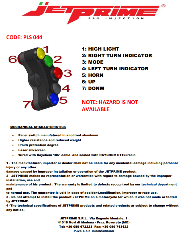 - Marca: Jetprime - per componenti motociclisti di alta qualità e potenti