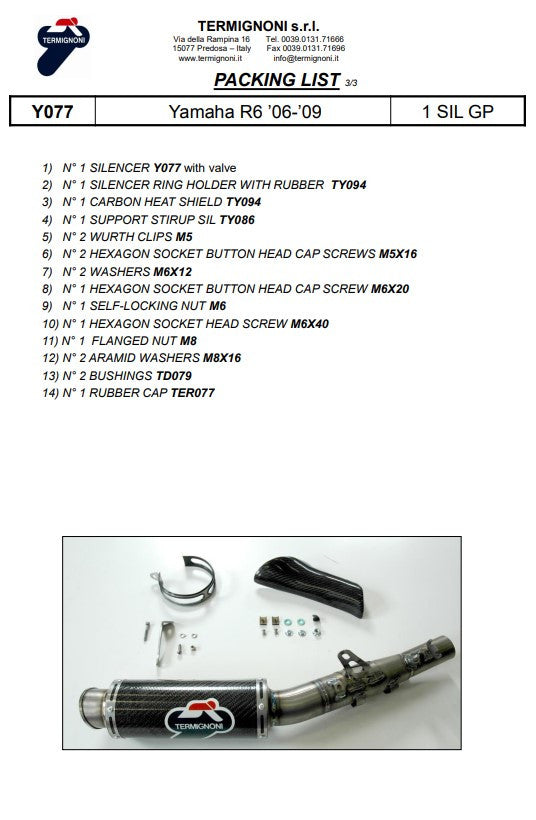 Termignoni Slip-On Classic-GP High Yamaha YZF-R6 (06-25) Y077080CR